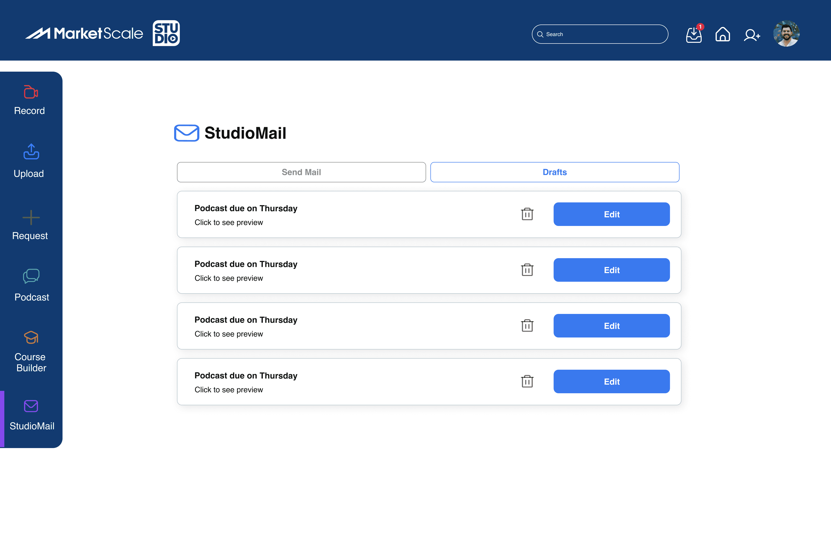 Putting the draft on the right side horizontally aligned with “create a studio mail”, it is much easier for users to see and will increase the usage of studio mail function.