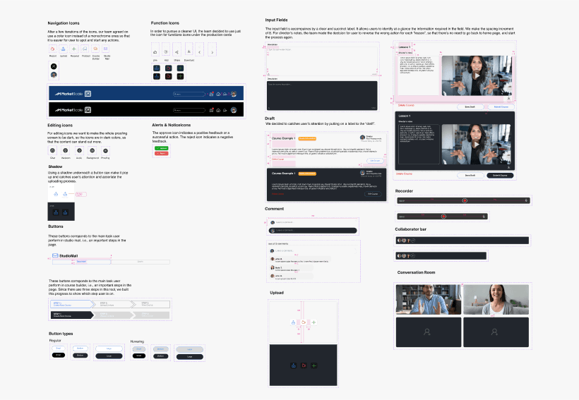 → Inconsistency within website design. There were 4 UX designers in the team, and each of us was assigned 4 different editor tools for the studio. We designed the tools based on the UI guide, however, there were a few discrepancies when we showcased the design. What I did was facilitate regular sync meetings with cross-functional teams to identify inconsistencies in our brand element and evangelize design thinking.