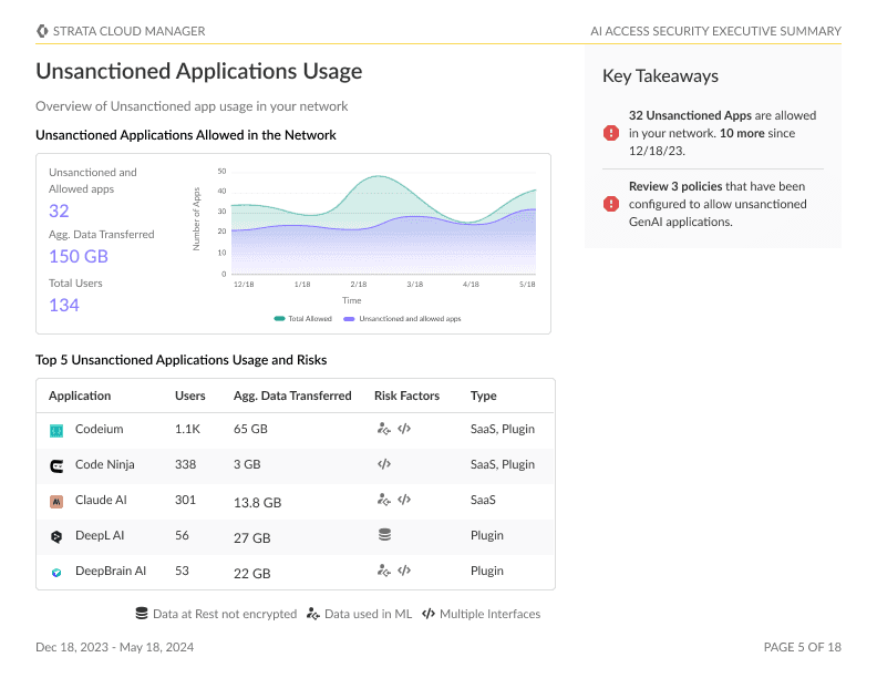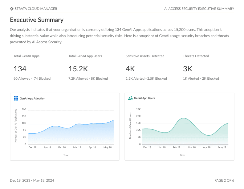 I led the design of reporting across various Palo Alto Network's product including AI Access Security and Unified Data Security. Below are some snapshots from the data visualization report that I worked on.